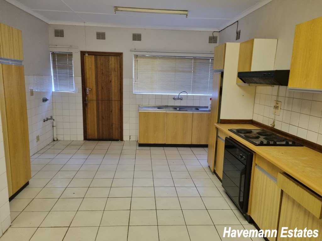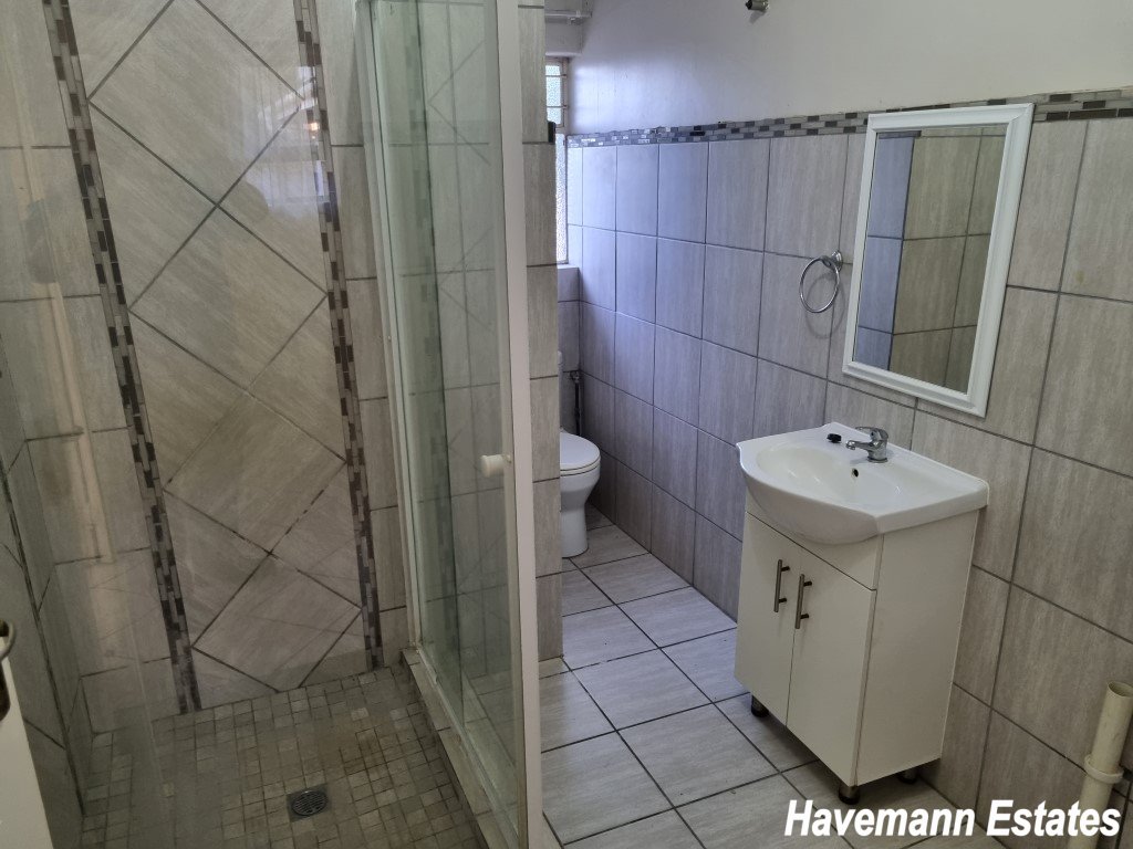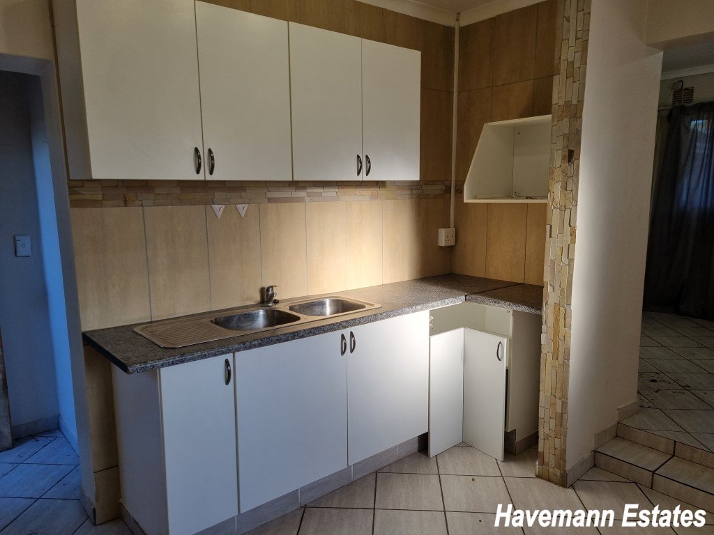 This spacious 4-bedroom house has 2 bathrooms (MES), 2 lounges and a dining room. Also, a big kitchen with laundry, a storeroom with 4 car ports and also a nice 1-bedroom flat included. You also pay power, water, sewage and refuse. To view call XOLI - 0782106257
